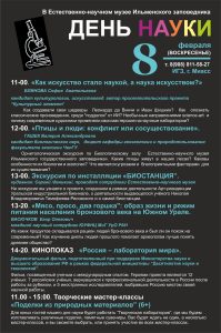 ДЕНЬ НАУКИ – 2026 в музее Ильменского заповедника День Науки в России отмечается ежегодно 8 февраля. В Музее Ильменского заповедника в воскресенье для наших любознательных посетителей будет работать лекторий. С расписанием работы лектория вы можете ознакомиться ниже. Программа лектория: 11.00 – 12:00 «Как искусство стало наукой, а наука искусством?» Сегодня искусство не перестает нас удивлять: …