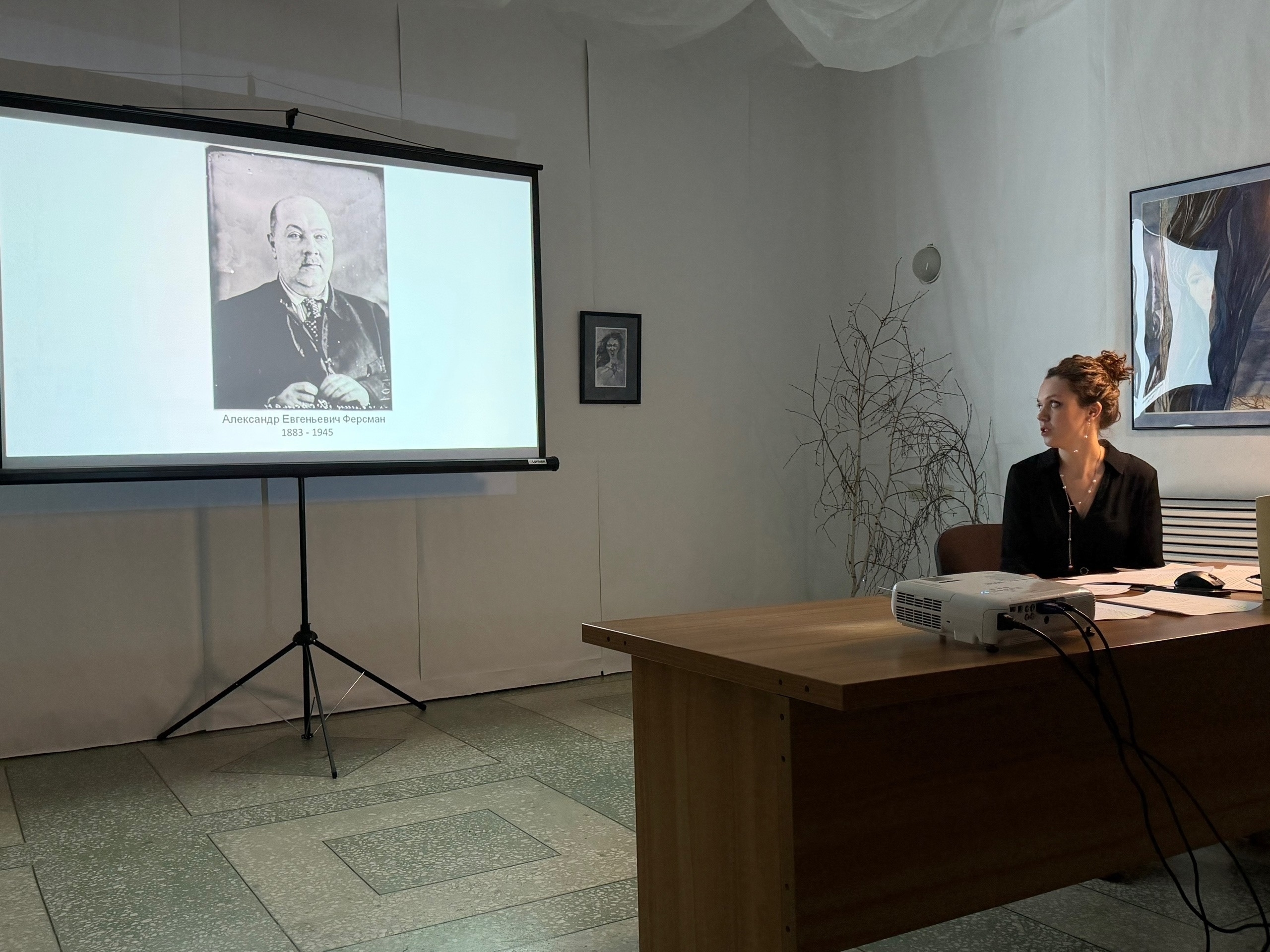 В праздничные дни, в нашем музее, состоялась лекция-беседа о выдающемся учёном, многогранном и интересном человеке — Александре Евгеньевиче Ферсмане. Поговорили о его научных открытиях и достижениях, о его разноплановой деятельности и насыщенной жизни. Узнали, как неприхотлив он был в быту, как заботился о ближних, как трепетно относился к своим учителям и наставникам. Не зря его так ценили и уважали коллеги, ученики, учёные с мировым именем и простые горщики (специалисты по добыче драгоценных и цветных камней), с которыми он так любил общаться.